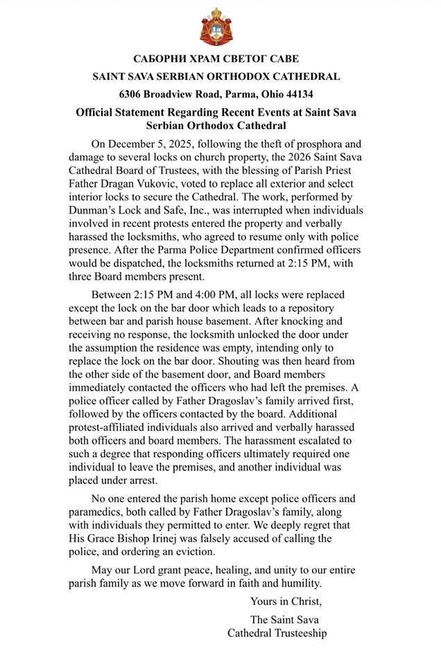 The faithful of St. Sava Cathedral deserve peace, order, and access to worship. They deserve leadership that upholds canonical discipline rather than capitulating to factional pressure. And they deserve accurate reporting—not sensationalized headlines that obscure the truth.